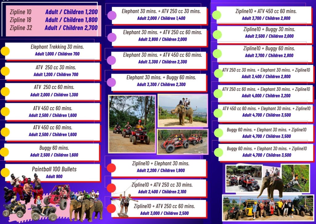 • Free for child 0-3 years old (Elephants trekking only and ATV only program)